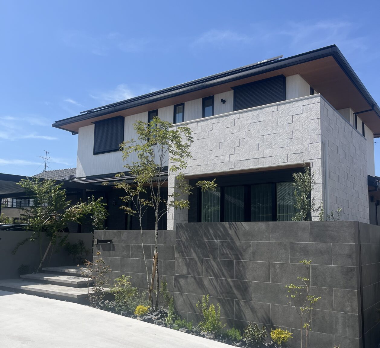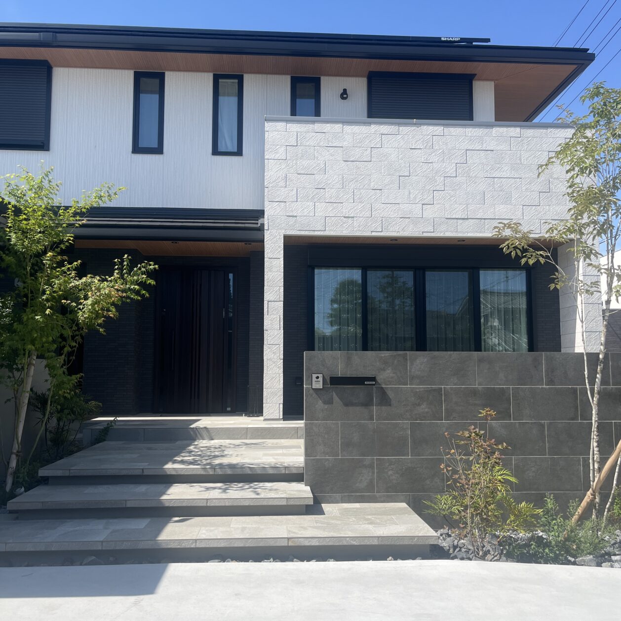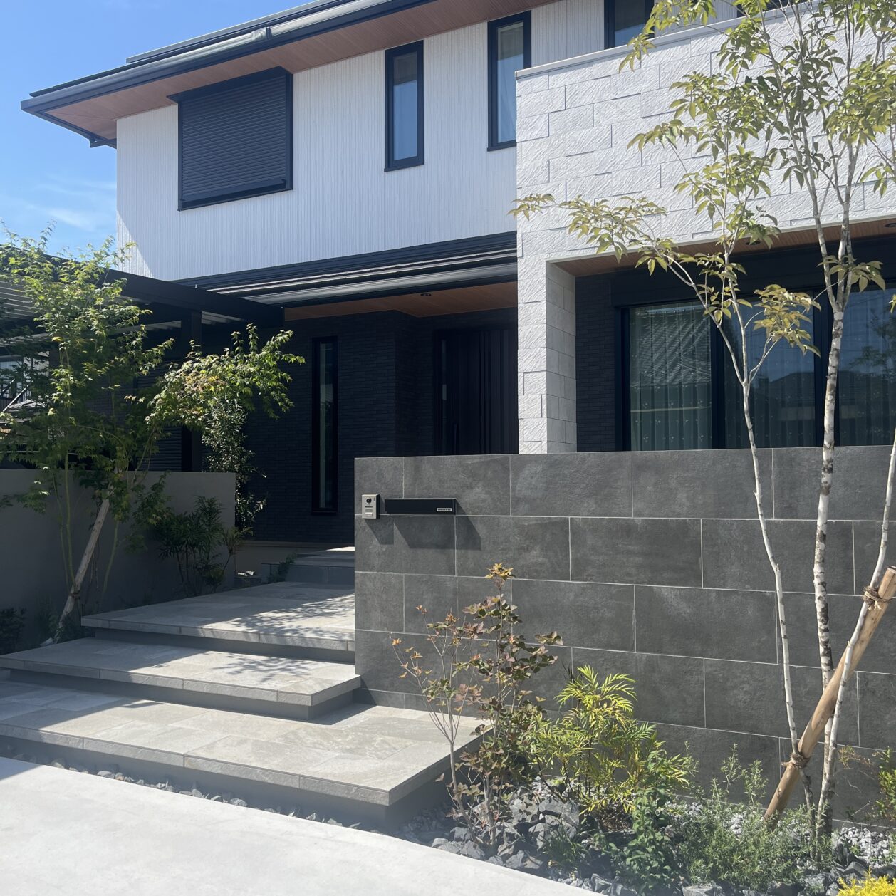 素材と植栽のバランスで、上質で心地よい外構空間に仕上げました。